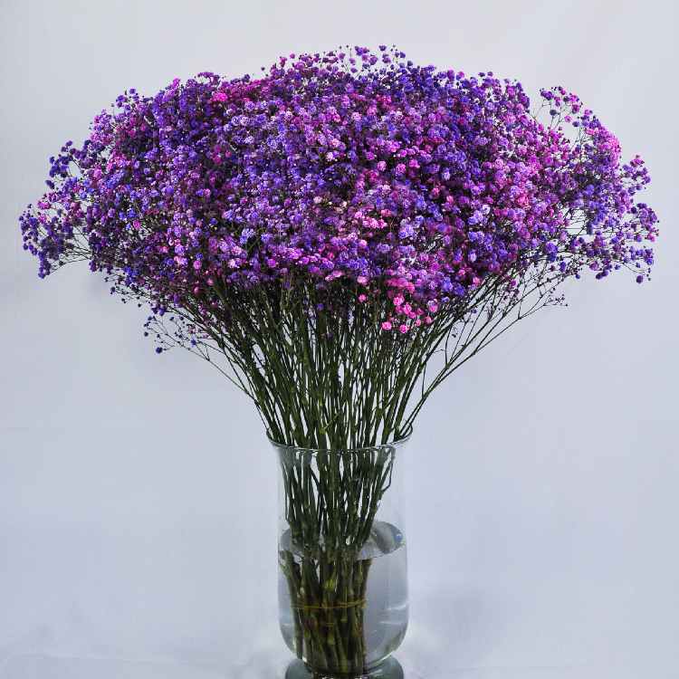 Dyed duo gypsophila combines two colors on the same stem, creating a captivating visual effect that enhances any floral arrangement. This unique variety retains the characteristic delicacy and volume while adding a dynamic touch to your compositions. Perfect for bouquets and centerpieces, dyed duo gypsophila is easy to handle and combine, bringing a bold and elegant style to your floral creations, making it ideal for any occasion